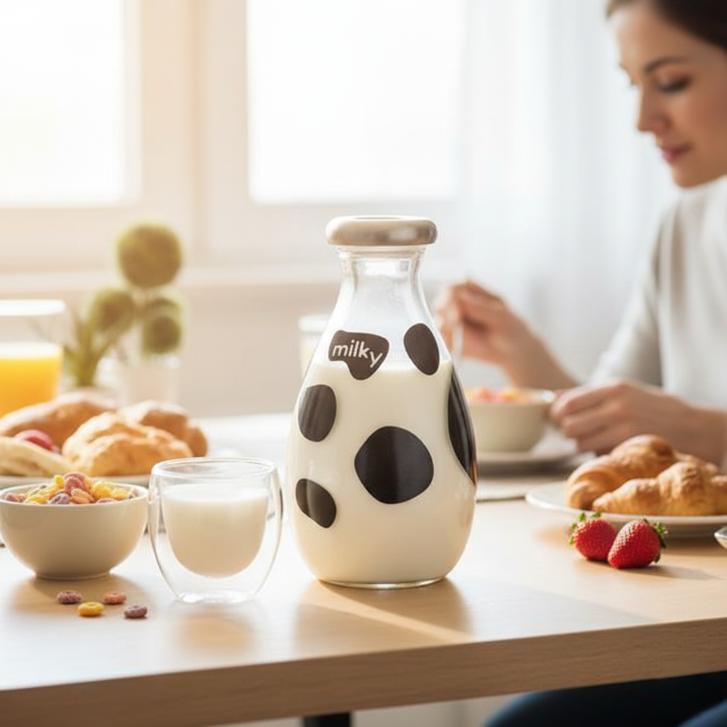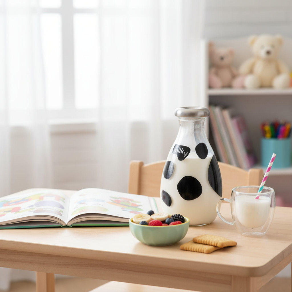 - Store and serve milk, fresh juice, water, or other beverages.