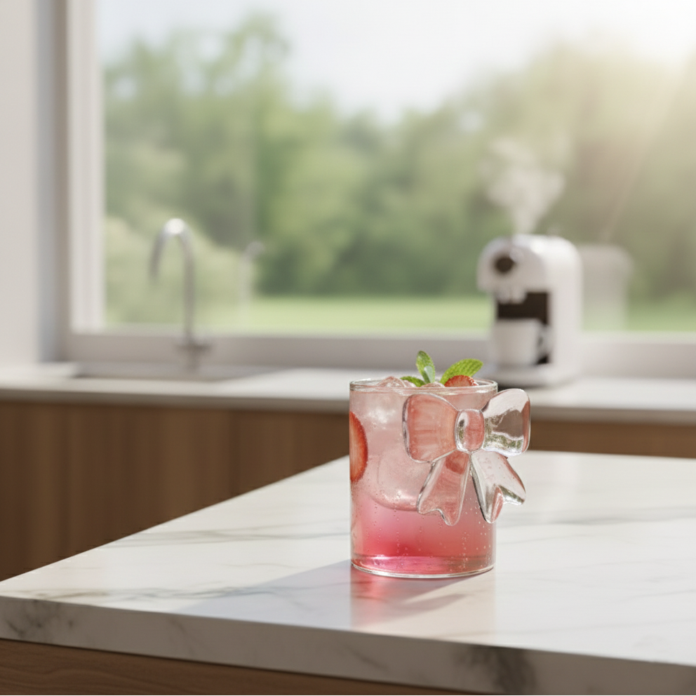 The Crystal Loom Knot Glass is a charming and practical cup designed for everyday enjoyment. Crafted from heat-resistant borosilicate glass, it combines elegance and durability, making it suitable for both hot and cold beverages. Its subtle bowknot design adds a decorative touch while remaining minimalist enough for any kitchen or dining setup. Perfect for coffee, tea, juices, or water, this glass blends style with functionality and is also ideal as a thoughtful gift.