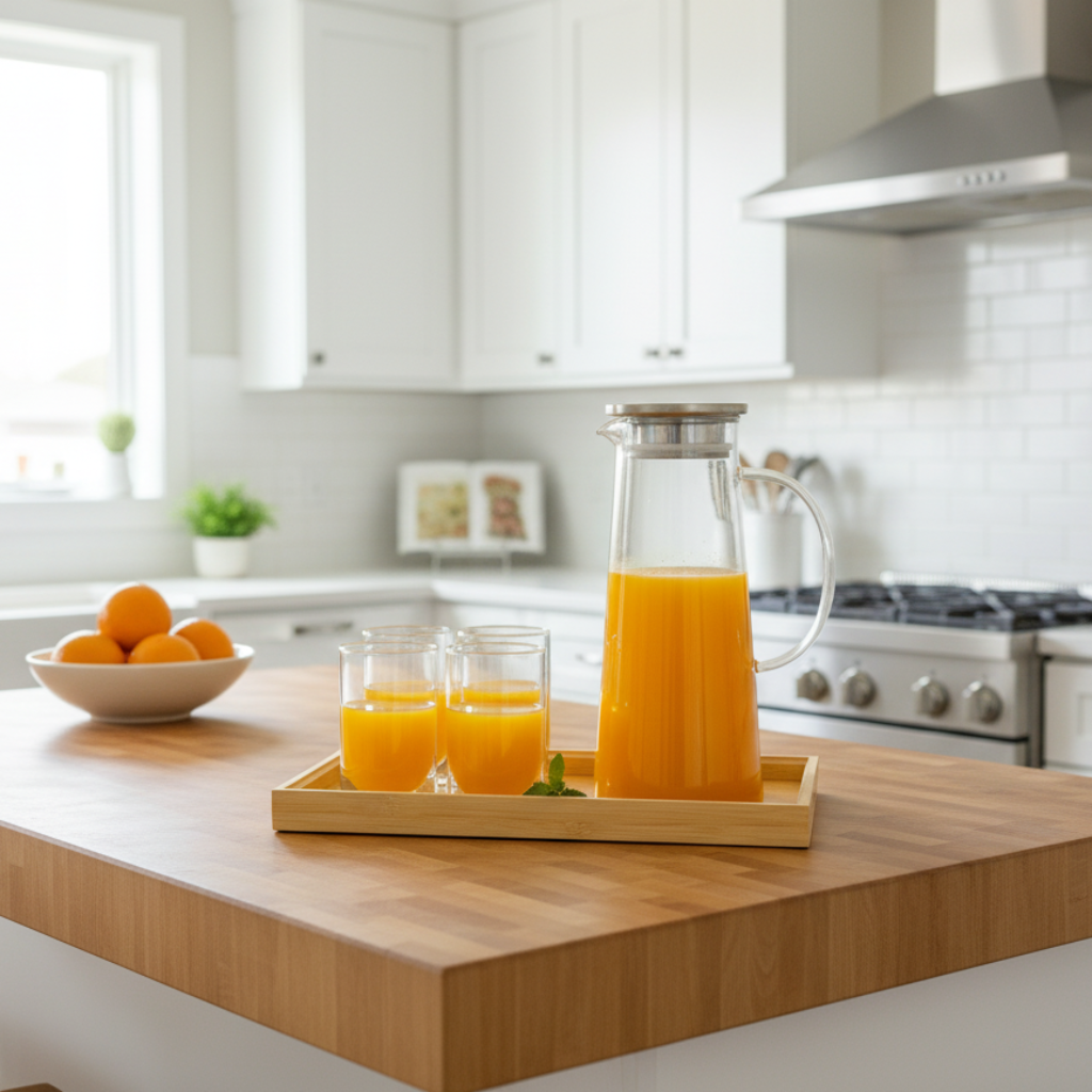 Add a touch of refined elegance to your table with the Echou 8-Pieces Pitcher & Glass Set. Crafted from premium borosilicate glass, this 8-piece set includes a stylish pitcher with a stainless steel lid, six durable drinking glasses, and a natural bamboo serving tray. Designed for both daily use and special occasions, it blends modern aesthetics with superior functionality — perfect for serving water, juice, iced tea, or any refreshing beverage in style.