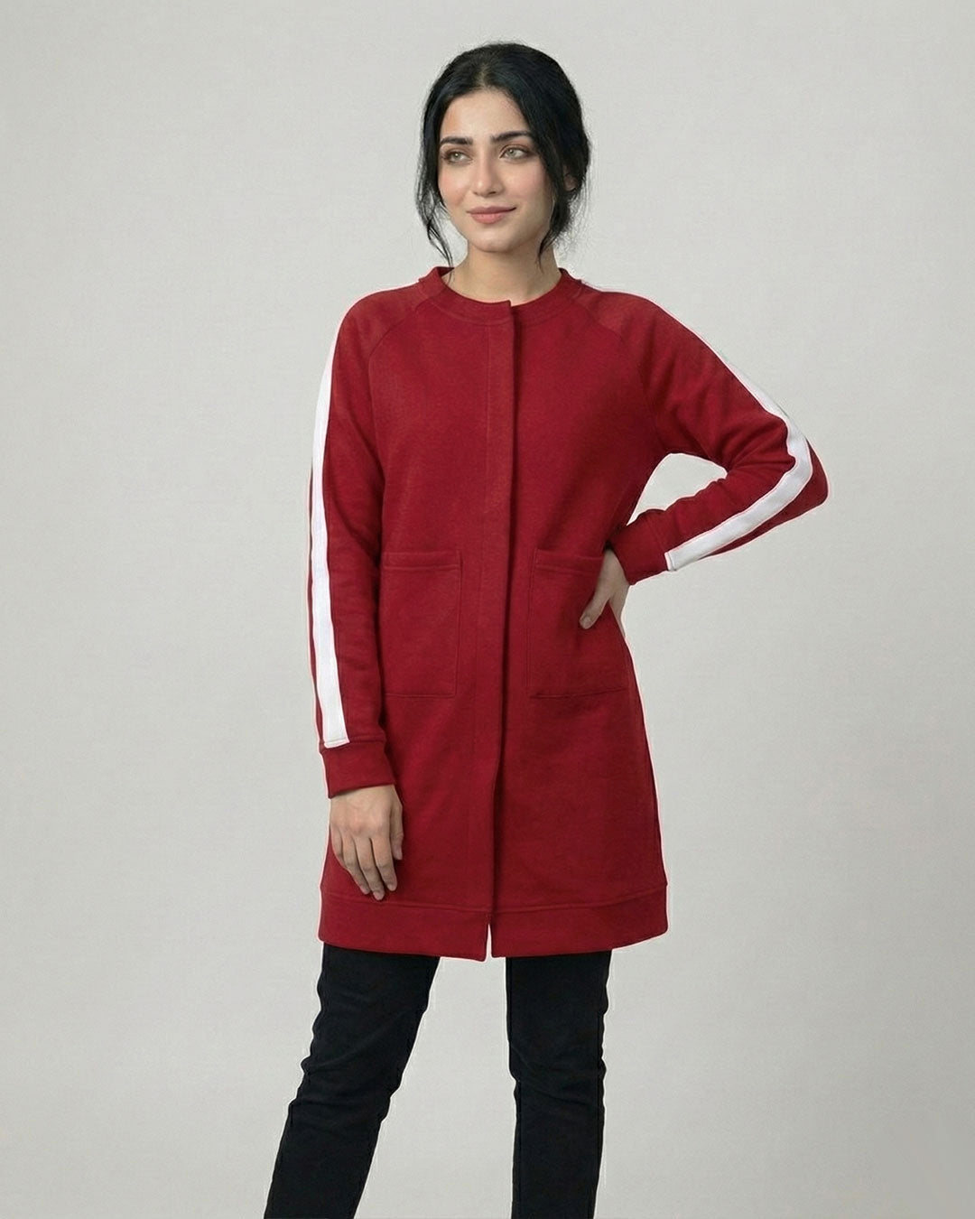 Featuring a longline open-front silhouette and bold white western stripes along the sleeves, it brings a sporty yet casual vibe thatβs easy to style. The long sleeves provide extra warmth, while the front pockets add practicality for daily wear.